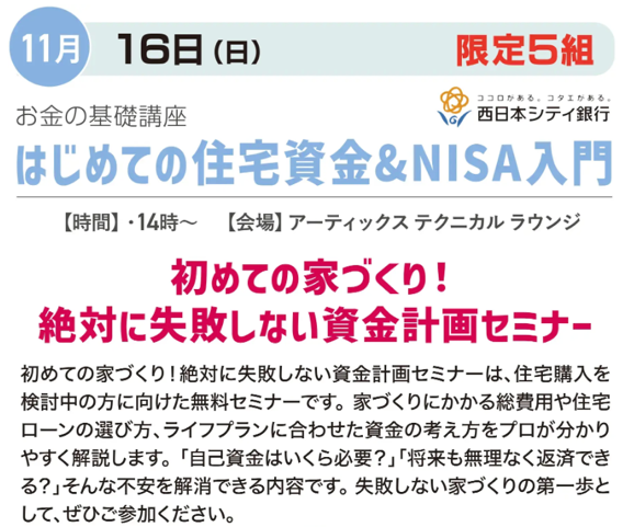 西日本シティ銀行による、家づくり初心者さん向けセミナー。
