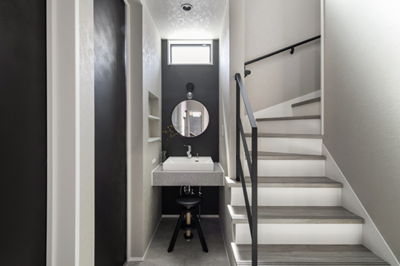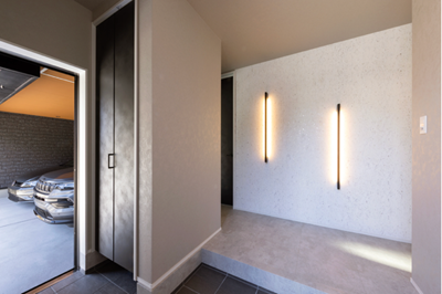 玄関には間接照明×大容量収納で、おもてなしにも◎
