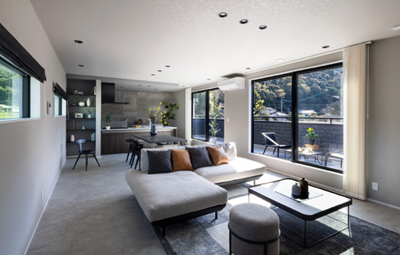 LDKは2階に配置。外からの視線を遮りながらも、空とつながるような開放感を演出🌤