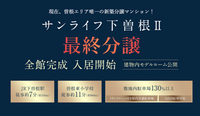 「サンライフ下曽根Ⅱ」が現在最終3邸となっています✨