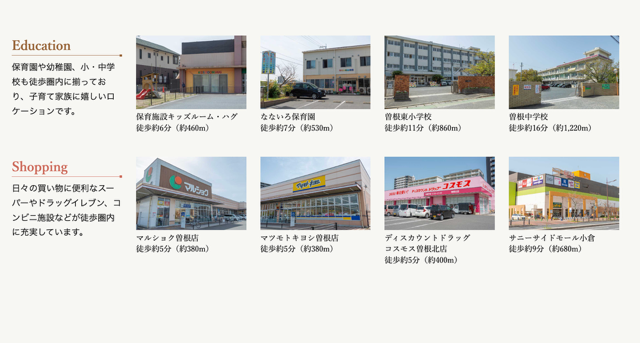 曽根エリアは生活施設が整った暮らしやすい地域です。