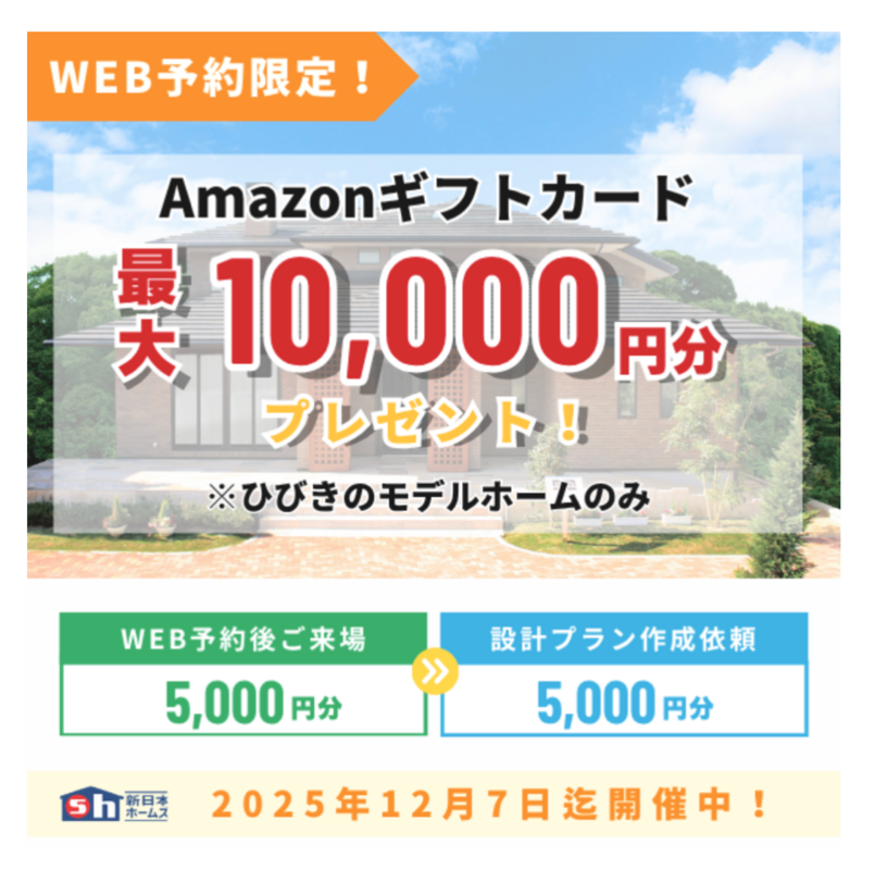 新日本ホームズさんがただいま「WEB来場予約キャンペーン開催中」です。