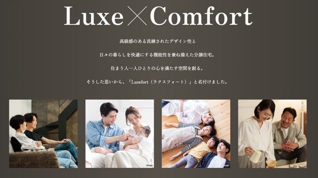 https://luxefort.jp/outline.php「LUXEFORT(リュクスフォート)」は、デザインの美しさ・暮らしやすさ・将来の安心を一体にした、“分譲住宅の理想形”。家族の時間を大切にしながら、いつまでも快適に暮らせる、上質で心豊かな住まいをお届けしています。