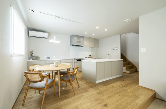 ・ダウンフロアリビング:床を一段下げた空間で、視線が下がり包まれるような落ち着きが得られます。