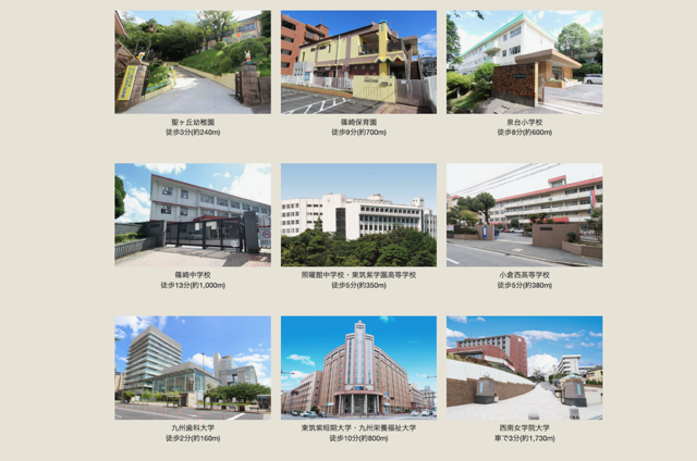 周辺には、幼稚園から大学まで、あらゆる教育機関が整っており、