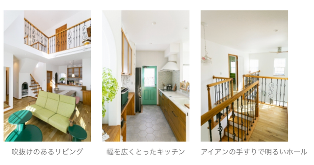 例えばリビングの一角に花柄クロスを採用、子ども部屋は明るめのカラー、キッチンには天然素材の木目をアクセントに。