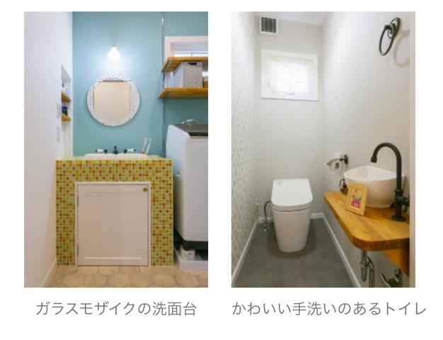 キッチンパントリー、ガラスモザイク洗面、トイレの遊び心あるクロスなど、細部にまでこだわりが詰まっています。