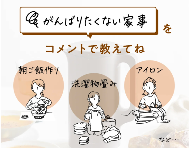 キャンペーン投稿に「がんばりたくない家事」についてコメント