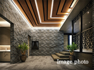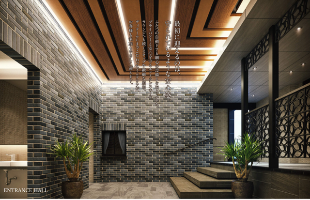 2つの自動ドアと細心の設備とを取り入れたプライバシーと安心を守るエントランスホールです。