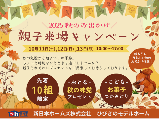 新日本ホームズさん「秋のモデルハウス親子来場キャンペーン」