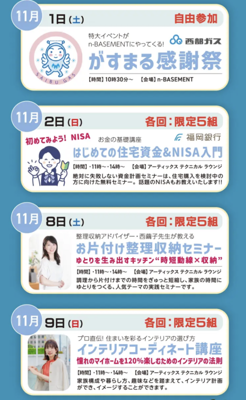 11月も、日々の暮らしを豊かにする多彩なイベントやセミナーが目白押しです!